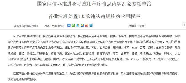 针对网民反映强烈的部分移动应用程序传播淫秽色情、暴恐血腥等违法违规信息,提供诈骗赌博、招嫖卖淫等违法违规服务的网络乱象,国家网信办依据《网络安全法》《网络信息内容生态治理规定》《移动互联网应用程序信息服务管理规定》等法律法规和国家有关规定,自11月5日起组织开展移动应用程序信息内...